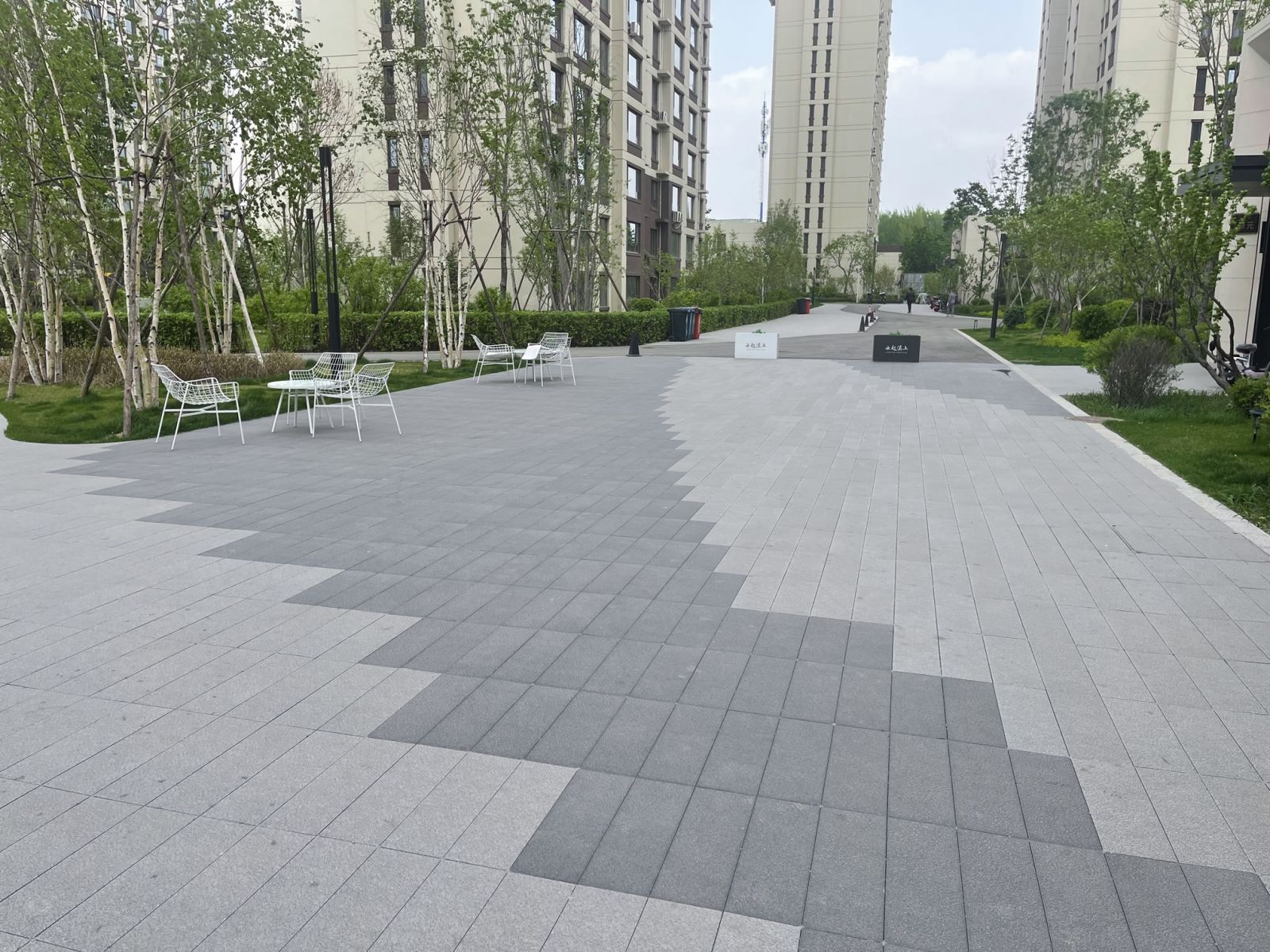 使用200*600芝麻灰、芝麻黑地鋪石瓷磚鋪貼,