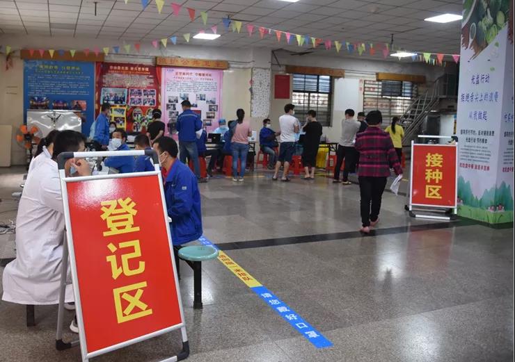 為科學有效保障員工身心健康,促進社會和諧發展,做到防控、生產兩不誤,在上級政府的關心支持下,官橋醫院、漳里村干部等的協助下,公司工會積極與政府相關單位對接,讓疫苗接種進企業,組織全體員工分批有序在廠區接種第一針劑新冠疫苗。