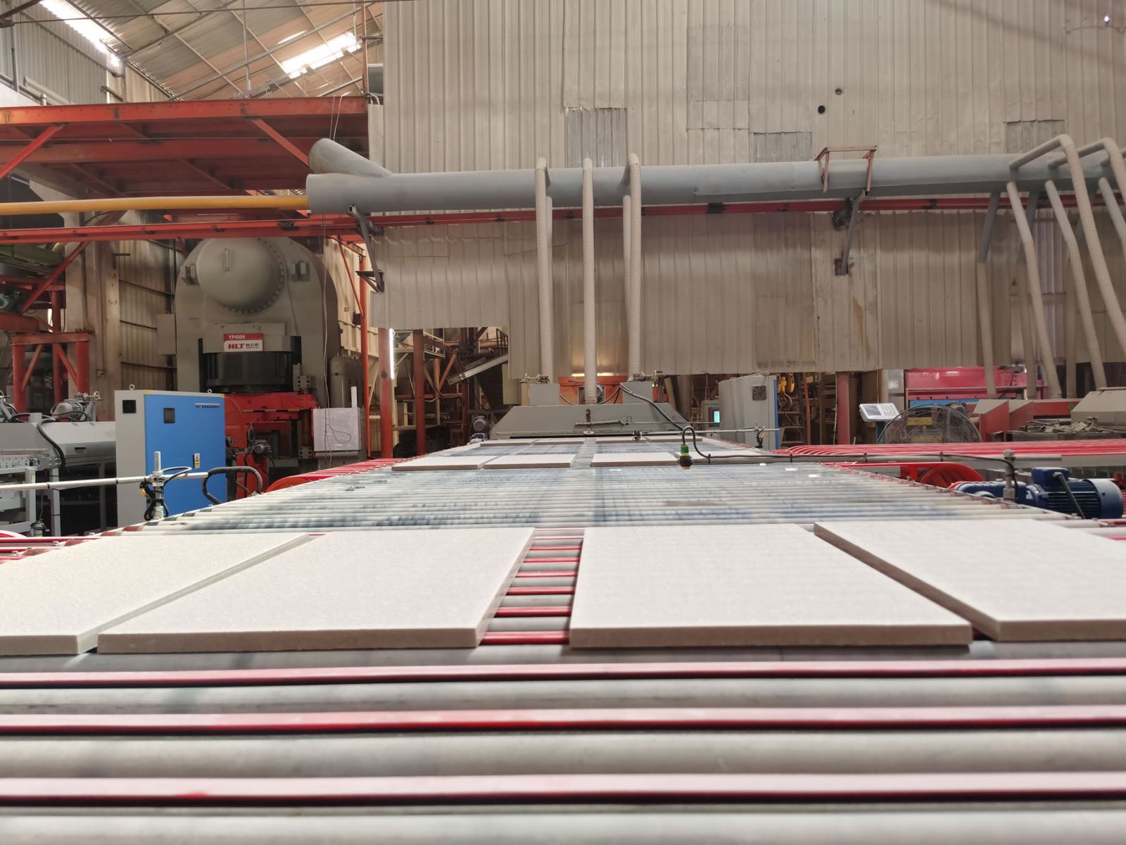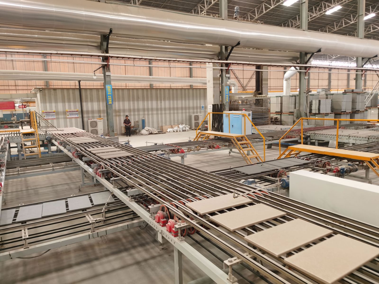 正一方智能厚板生產線按照自動化、數字化、智能化生產模式的高標準原則,配備了高效自循環五層烘干窯、西斯特姆高清數碼噴墨打印機等先進設備,專業生產雙零吸水率、高抗折強度的大規格厚板、地鋪石產品。